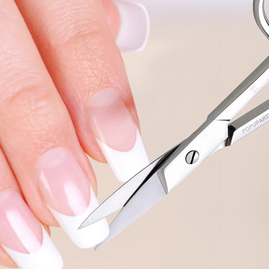 POPUPARTY Stainless steel eyebrow scissors Curved slightly serrated for eyelashes, beard, beard, nose hair, toenails - pedicure, nail scissors for men and women